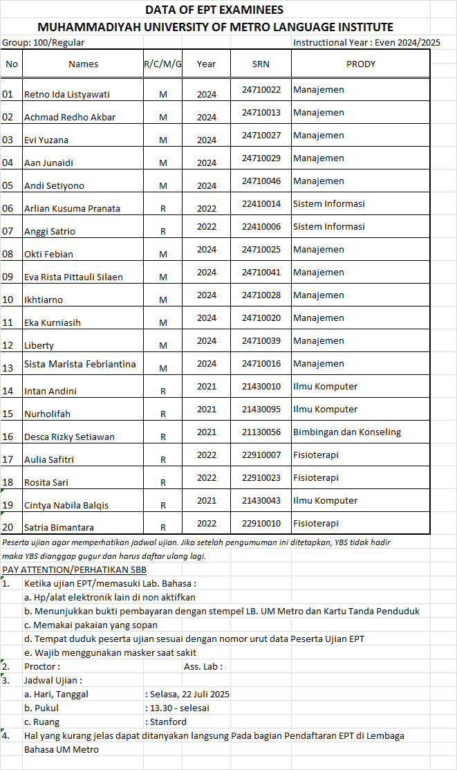 Jadwal EPT Grup 100 (19 Juli 2025)
