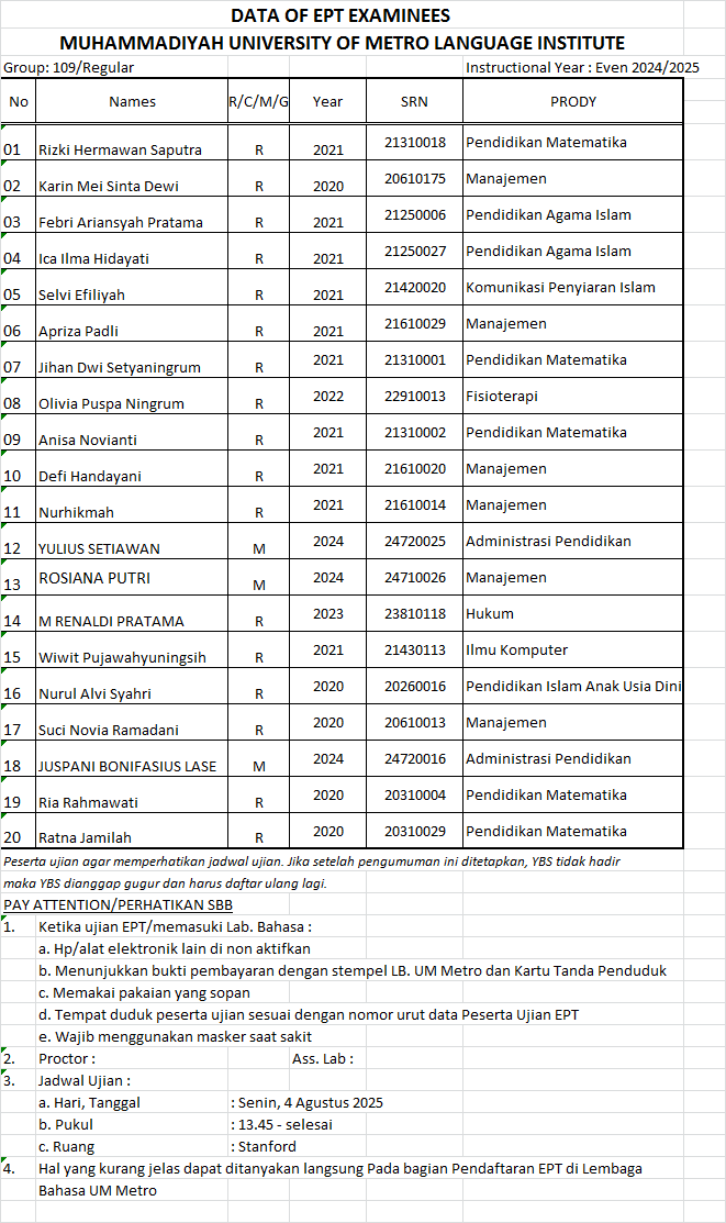 Jadwal EPT Grup 109 (1 Agustus 2025)