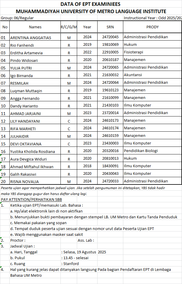 Jadwal EPT Grup 6 (15 Agustus 2025)