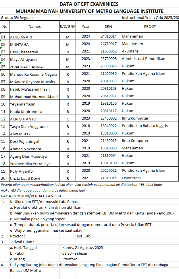 Jadwal EPT Grup 9 (19 Agustus 2025)
